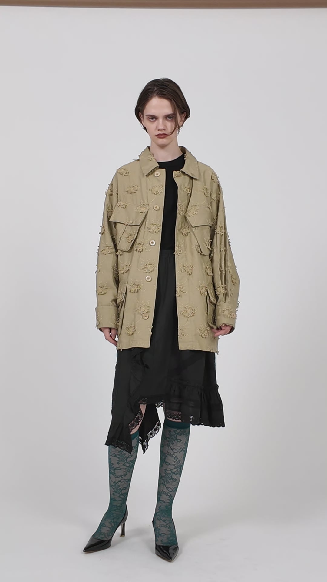 frill collar hunting jacket|BLACK