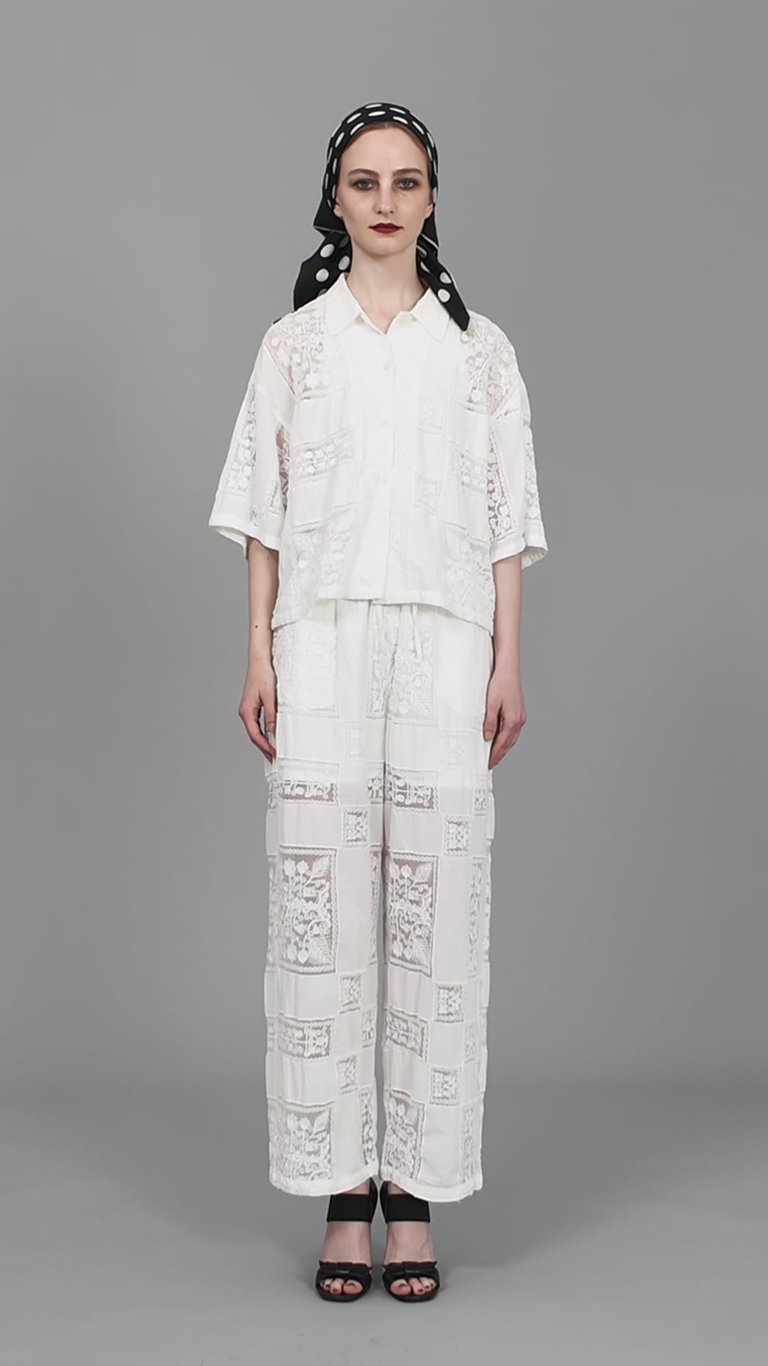 patchwork embroidery shirts とのセットアップスタイルがオススメ。