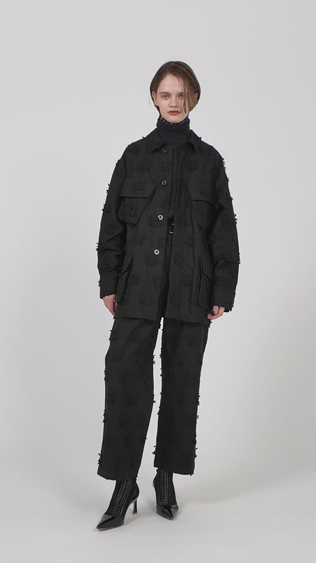 毎年大好評をいただいております、crinkle crinkle crinkleのシグニチャーである3Dのフラワー刺繍のデザインからチノ素材のイージーパンツが新登場いたしました。