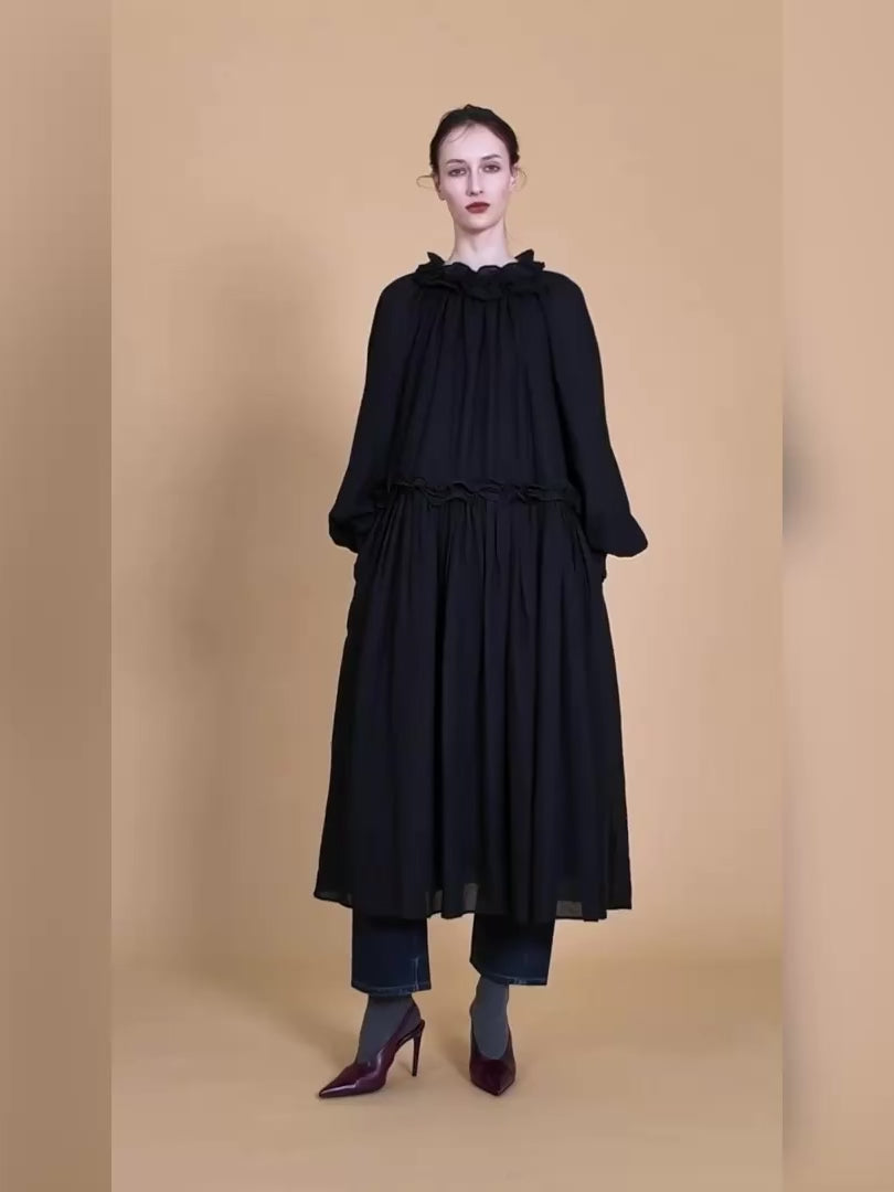 コットンジョーゼットを使用したボリュームのあるワンピース。