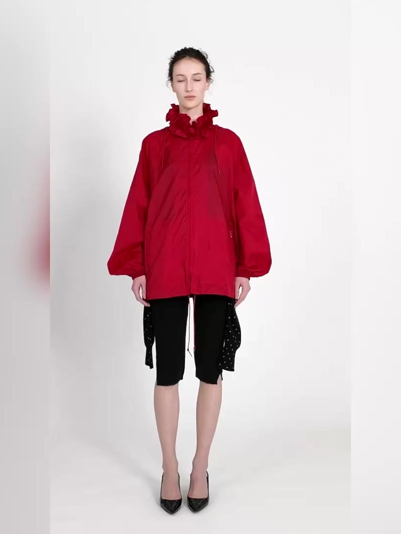 crinkle crinkle crinkleのシグニチャーであるフリルネックをあしらったウインドブレイカーです。